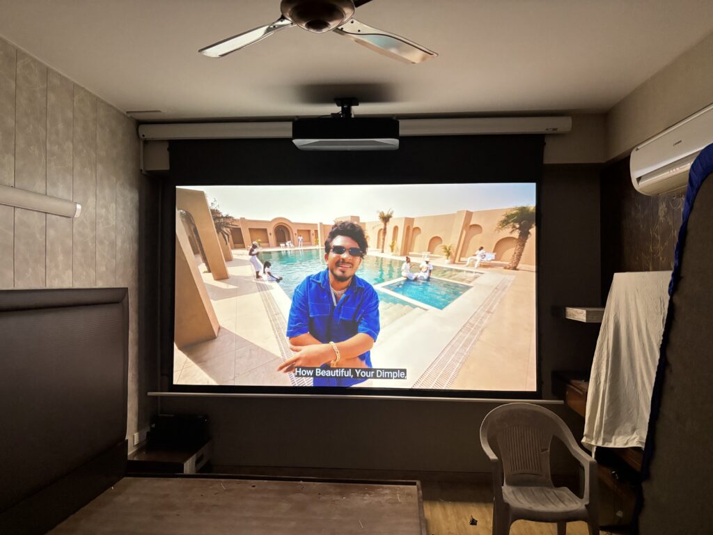 In comparison, the Epson EH-LS800B is designed for powerful performance in bright environments, offering an impressive 4000 lumens of colour and white brightness powered by advanced 3LCD technology with 4K PRO-UHD enhancement. This makes it one of the brightest ultra-short-throw projectors in its class and an excellent TV replacement projector for Indian living rooms with ambient light. The Epson produces vibrant, punchy visuals without rainbow artefacts, ensuring comfortable long-term viewing for family entertainment, sports, OTT streaming, and everyday use. Its ultra-short-throw ratio allows installation just inches from the wall, creating a clean and modern aesthetic when paired with a high-quality FAFLR or CLR (Ceiling & Ambient Light Rejecting) screen. While the Epson focuses on brightness and versatility, the BenQ emphasizes native 4K sharpness, wider colour reproduction, and premium cinematic depth — making the final choice dependent on room lighting conditions and usage priorities.