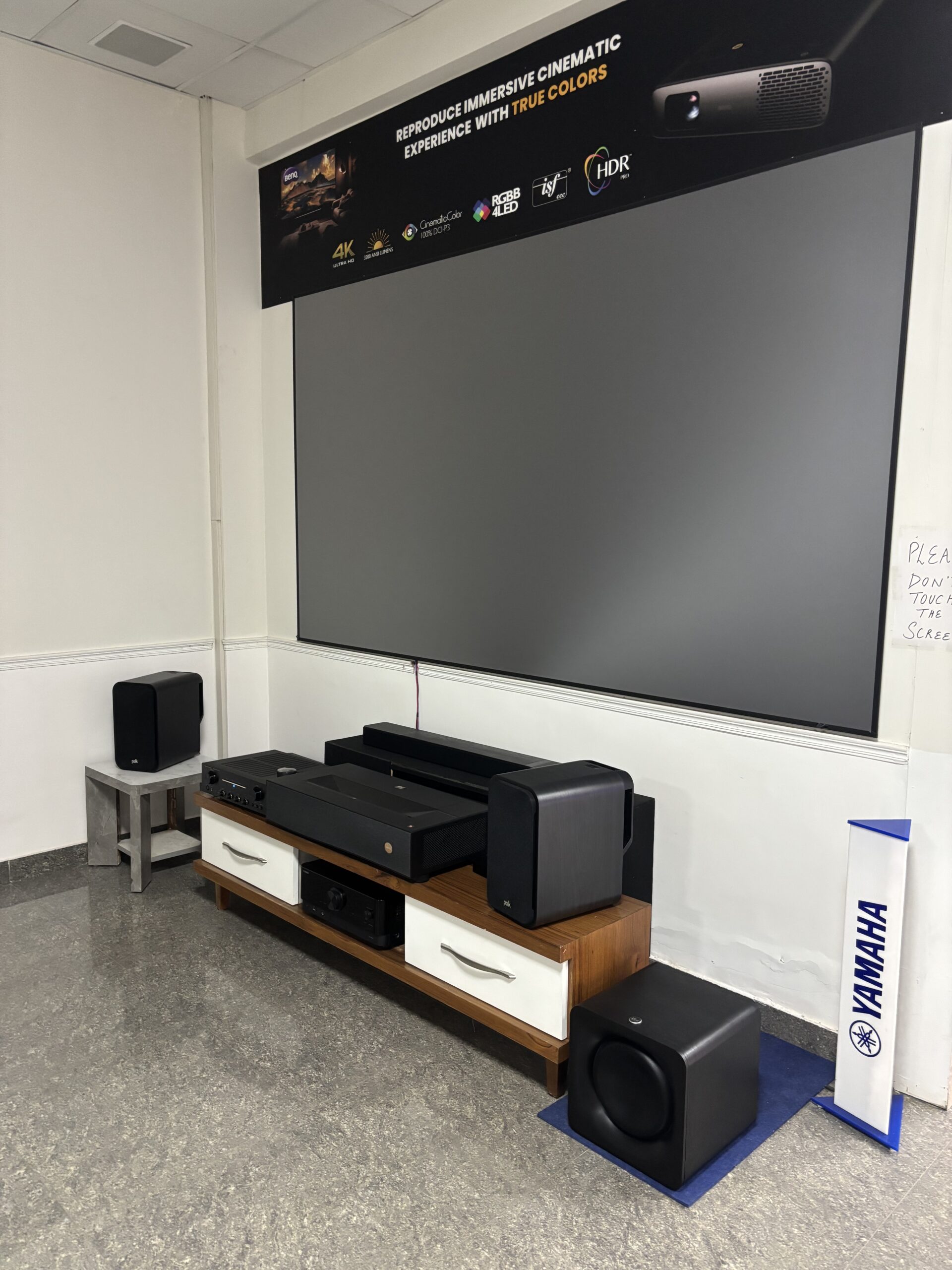 Both Epson & Benq UST projector are very good but one thing is more important that is always overlook by sellers & customer — without a proper FAFLR or CLR screen, you will never see the projector’s true performance. In our demo room we have installed Elite Screen FAFLR 120 inches top of the line UST projector screen .