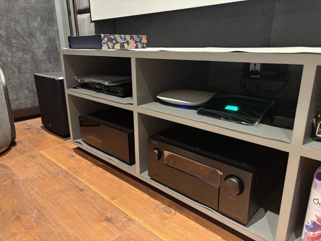 Using two subwoofers instead of one allowed us to eliminate room modes, improve bass consistency across all seating positions, and create a uniform low-frequency field. The system was carefully tuned with an 80Hz crossover, ensuring seamless integration between the subwoofers and the main speakers. The result is bass that is not just powerful, but clean, articulate, and immersive. As we often explain, one large subwoofer may impress on specifications, but dual properly integrated subwoofers create a far superior listening experience.