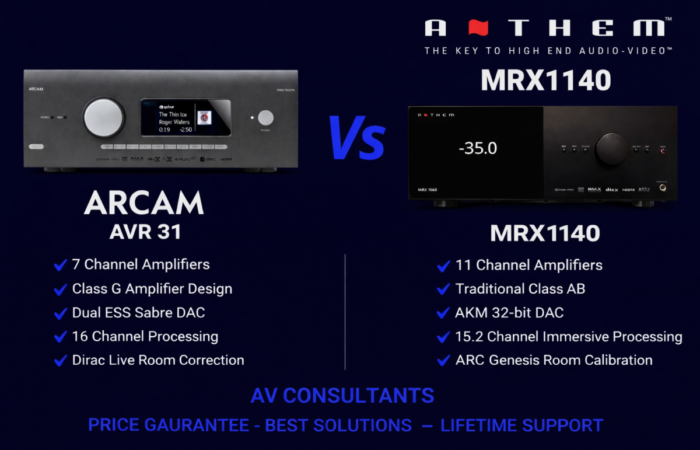 Author avconsultants Published on: March 8, 2026 Arcam AVR31 vs Anthem MRX 1140 Expert Analysis by Deepak Saxena – AV Consultants Mohali When comparing premium AV receivers like the Arcam AVR31 and the