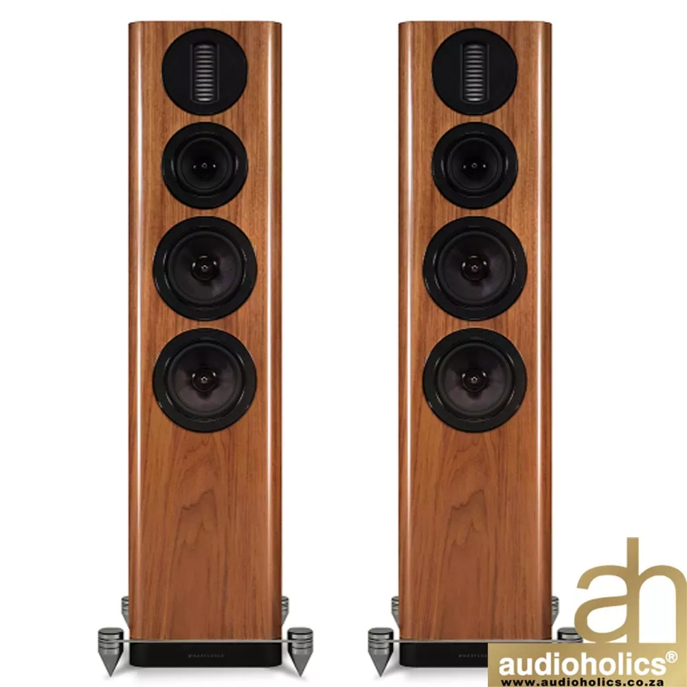 Dual 5.25″ woofers, folded ribbon tweeter, dual 8″ passive radiators, 29–35kHz response.